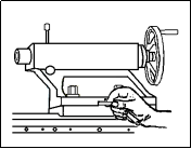 是主機與軸系法蘭定位檢測,將直尺貼附m塞尺在以軸系推力軸或第一中間軸為基準的法蘭外圓的素線(xiàn)上,用塞尺測量直尺與之連接的柴油機曲軸或減速器輸出軸法蘭外圓的間隙ZX 、ZS,并依次在法蘭外圓的上、下、左、右四個(gè)位置上進(jìn)行測量。下圖是檢驗機床尾座緊固面的間隙(<0.04m)。