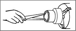調節卡鉗的開(kāi)度時(shí),應輕輕敲擊卡鉗腳的兩側面。先用兩手把卡鉗調整到和工件尺寸相近的開(kāi)口,然后輕敲卡鉗的外側來(lái)減小卡鉗的開(kāi)口,敲擊卡鉗內側來(lái)增大卡鉗的開(kāi)口,但不能直接敲擊鉗口。這會(huì )因卡鉗的鉗口損傷量面而引起測量誤差,更不能在機床的導軌上敲擊卡鉗,如下圖所示。