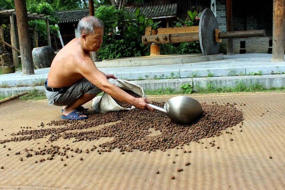 烘干茶籽要烘干到什么程度全憑師傅的經(jīng)驗,師傅曾傳授一個(gè)秘訣,茶籽烘干到一定程度的時(shí)候就用手去捶茶籽,茶殼和茶粒能分離開(kāi)來(lái)。