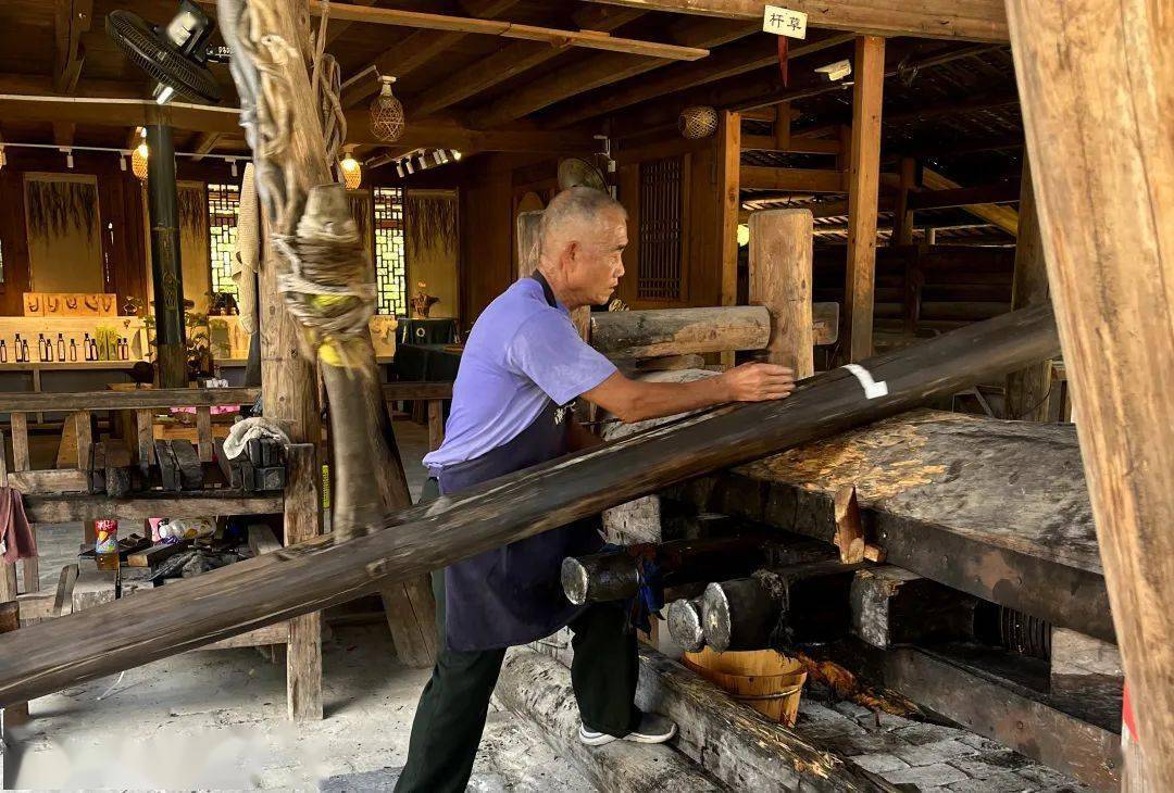 東漓古村榨油坊,師傅一直堅持用“盤(pán)碾錘撞”傳統方法榨油,100多斤的大木槌,在數米開(kāi)外,準確無(wú)誤的擊中鍥子,這是日積月累的舉重若輕,當當震耳的飛錘之聲和榨油師傅矯健身影,成為了這里一道獨特的風(fēng)景線(xiàn)。